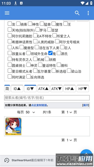 4、筛选完成后,向下滚动页面即可查看符合所选条件的英灵列表详情。