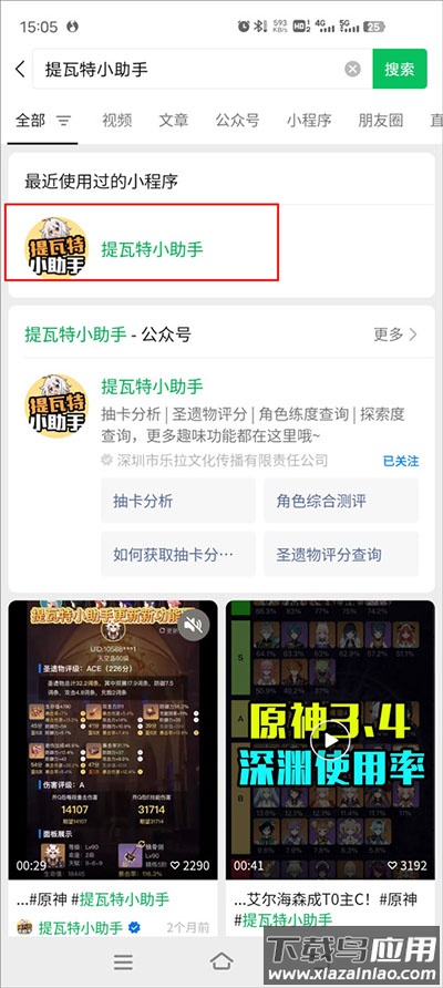 4、随后打开微信,搜索并找到“提瓦特小助手”公众号;
