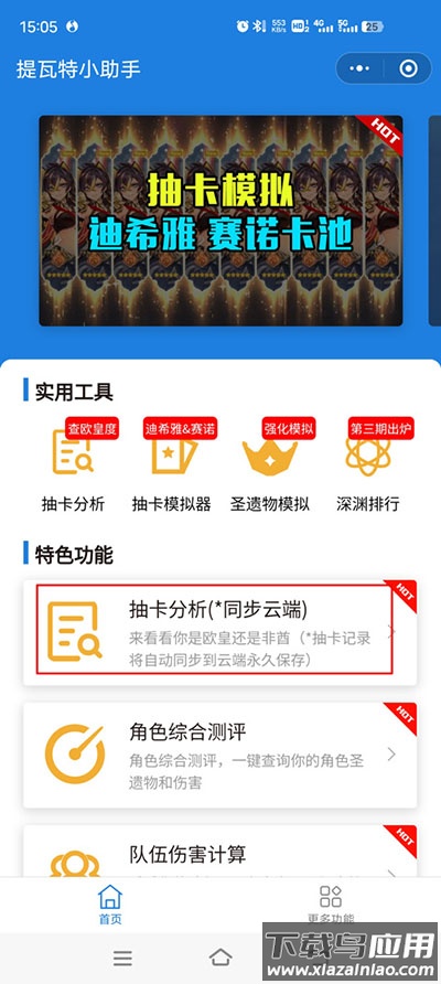 5、在公众号内的实用工具或特色功能栏目中,进入抽卡分析服务;