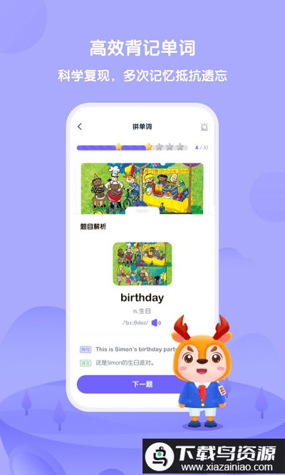围绕课标核心词汇展开训练,融合发音、释义、拼写与应用四个维度;通过科学循环记忆,让单词积累变得轻松有效。
