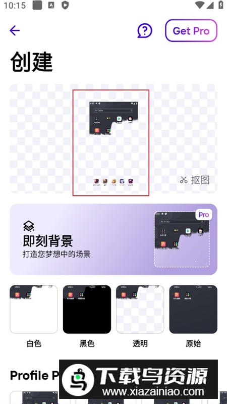 6. 点击“下一步”,PhotoRoom将自动去除原背景,并提供纯色、模糊或图库背景等多种替换选择;你可以在应用中浏览并挑选喜欢的背景样式。