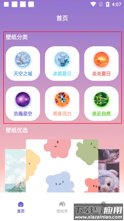1、打开软件后在首页选择自己喜欢的壁纸类型