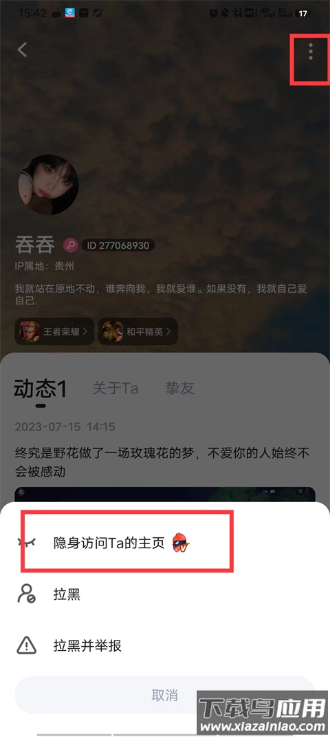 2、点击该用户的头像,进入其个人主页;