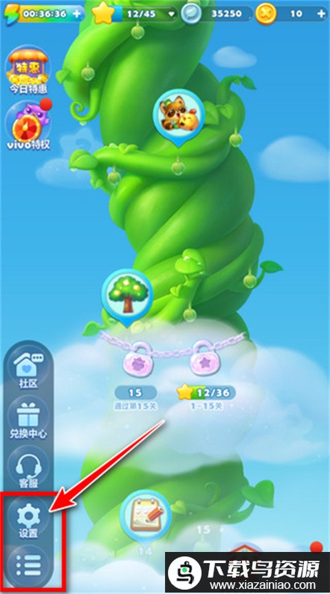 神奇的豌豆种子落入梦之森林,一夜之间长成参天藤蔓,将村长房屋托举至云端。村民们决心攀爬藤蔓展开营救,玩家需要沿途消除障碍,抵达顶端拯救村长。