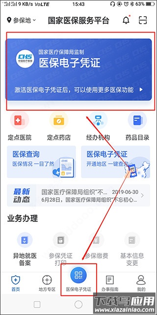 1、进入中国医疗保障app,点击“医保电子凭证”;