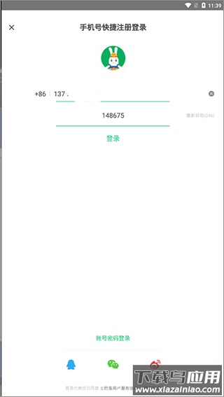 1、安装应用后打开,输入个人手机号码并点击获取验证码。