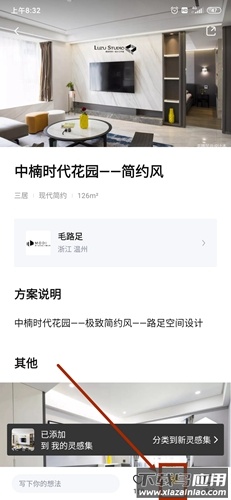 在首页浏览时,如果看到喜欢的装修案例,可以点击进入查看详情,随后点击右下角的收藏图标即可保存该方案。