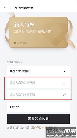 4、根据提示输入装修预算与房屋面积,点击查看装修效果。