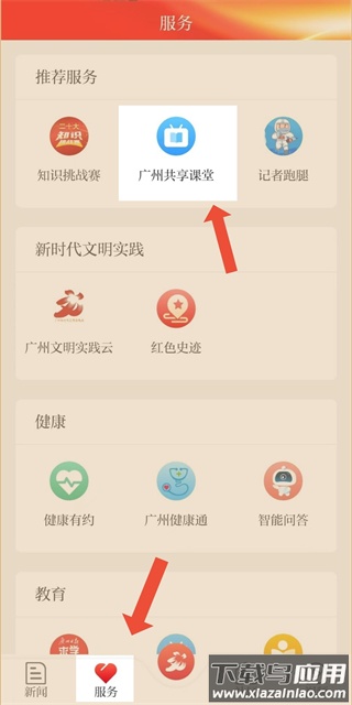 方法一:安装应用后打开,在导航栏选择“服务”,点击“共享课堂”即可进入。