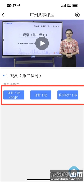 完成选择后,点击相关课程进入详情页,可下载课件PDF、教学素材与教学设计等资料。