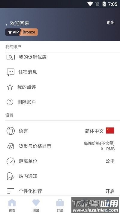7. 个人中心提供住宿信息管理、我的点评、账户设置、语言与货币切换、通知偏好及个性化推荐等功能。