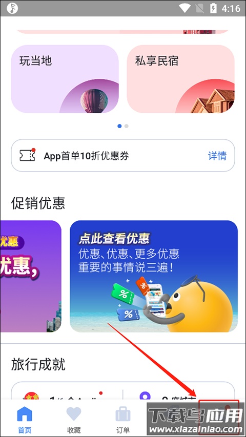 3. 首页展示酒店住宿、当地体验、特色民宿及促销活动等主要功能入口;