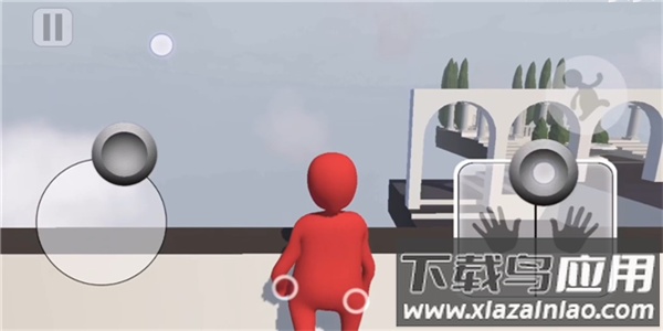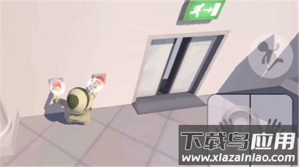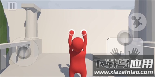 2、随后调整视角至与墙面大致平行,将左右手的控制按钮向下拉动,角色便会做出引体向上的动作;