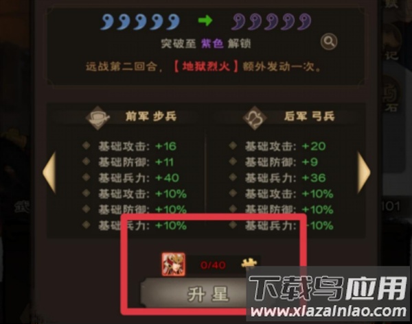 1、武将初始为蓝色品质,蓝星满级后需40碎片突破至紫色;