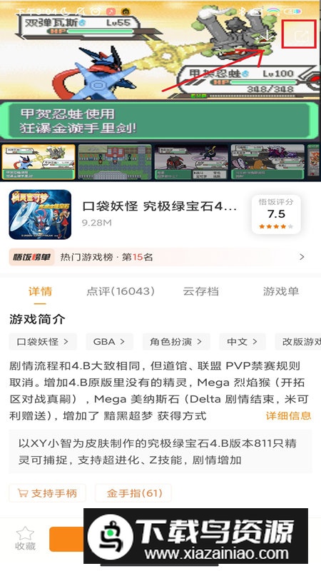 2、点击该游戏页面右上角的箭头图标。