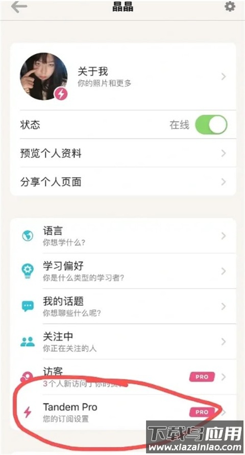 1、首先登录账号,进入个人主页,点击页面下方的“Tandem Pro”选项;