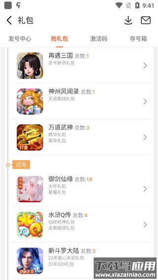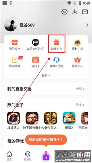 打开应用后,进入“我的”页面,点击其中的“游戏礼包”入口;