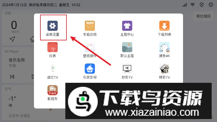 1.在车机上启动嘟嘟桌面PRO,点击界面指示的图标或右上角的设置按钮。