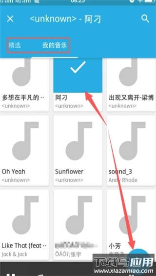 精选中包含推荐曲目,我的音乐则为本地文件,选中后打钩确认;