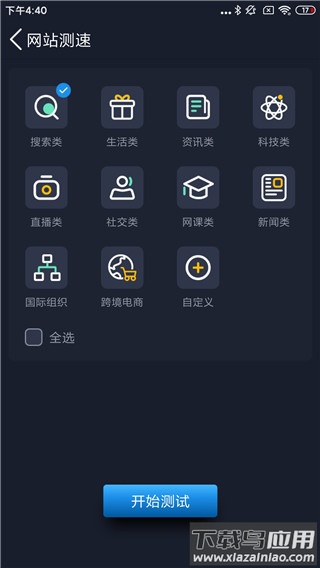 例如在网站测试中,用户可选择搜索、生活、资讯等预设类别,支持单选或多选。也允许手动输入特定网址进行测试,灵活性较高。此功能能模拟真实使用场景,反映不同应用下的网络表现。