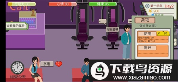 12、在健身房锻炼可以增加健康与魅力值,不过需要支付一定费用。