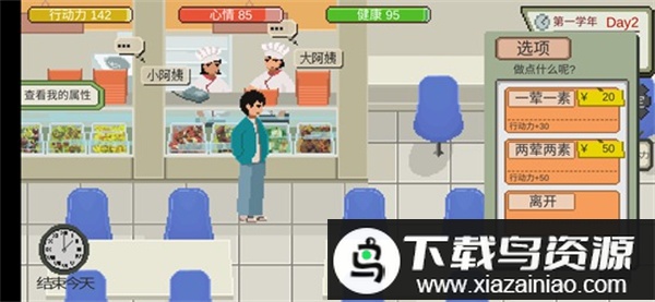 10、在食堂可以找小阿姨购买饮料,找大阿姨购买饭菜,这些都能补充行动力。