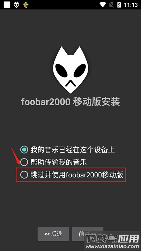 1、在初始设置界面选择“跳过并使用foobar2000移动版”。