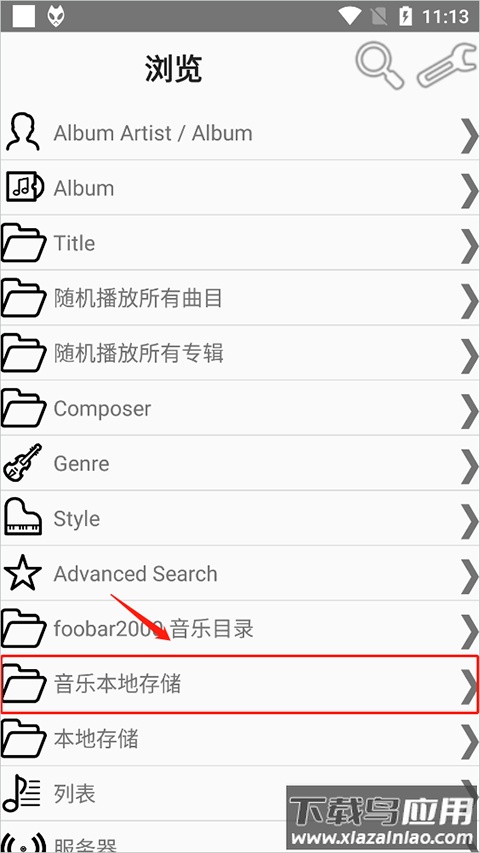 2、进入主界面后找到“音乐本地存储”选项并点击进入。