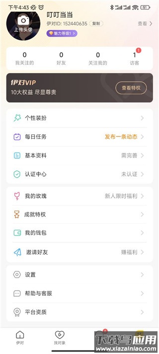 1、打开伊对2024官方正版软件,点击“我”,进入个人主页。