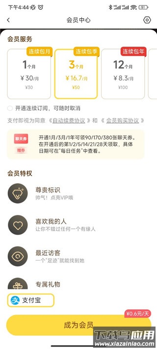 2、选择“查看特权”,了解具体的收费标准。