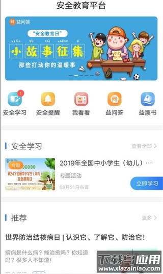 3、登录后进入首页,点击“安全学习”选项,选择“立即学习”。