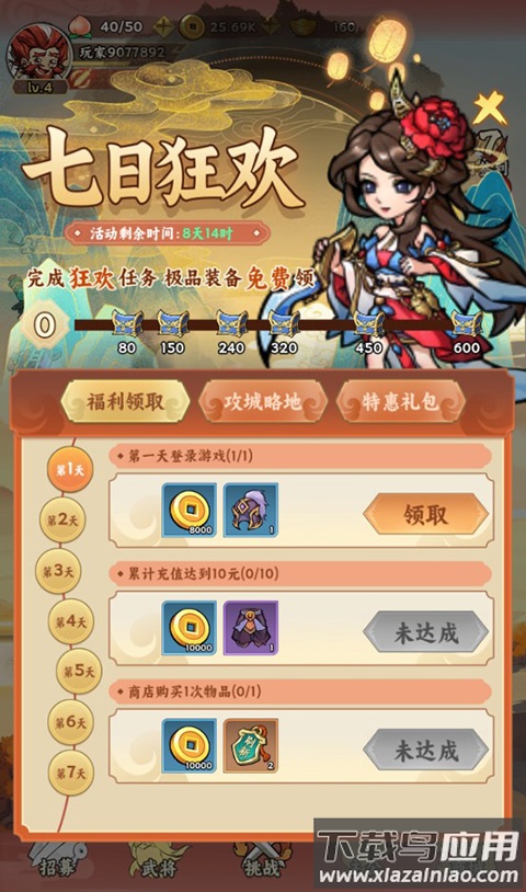 参与七日狂欢活动,连续七天完成任务,赢取大量丰厚奖励。
