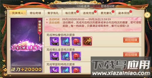 游戏中不仅支持异性结缘,同性角色之间也可进行结义。若在开服前七天内完成结缘或结义,还能获得额外赠礼;选择神仙眷侣档次提亲的玩家,更可限定称号“三生三世完美情人”。