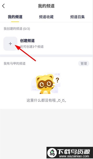 2、进入我的频道界面后,需要创建一个新频道以便好友加入进行语音交流,点击创建频道按钮。