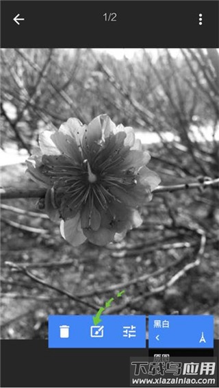 3. 点击界面右上角标有“1”的数字,出现“黑白”与“原图”选项后,再次点击黑白。