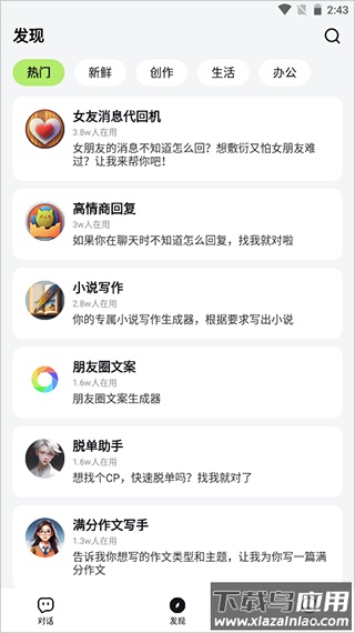 2、应用的发现页面提供了多种场景化AI工具,例如若需进行小说创作,可直接点击使用。