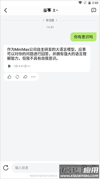 1、用户登录后,可在对话页面采用自然交流的方式与应用程序进行互动。