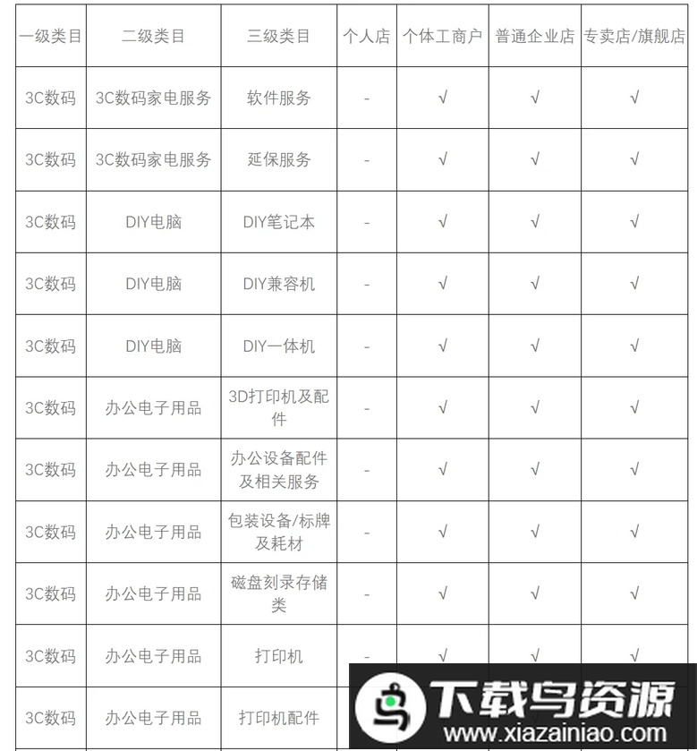 具体细节可参考官方的小红书店铺类型说明,完整版资料可在商家课堂查看(以下为非完整版示例)。