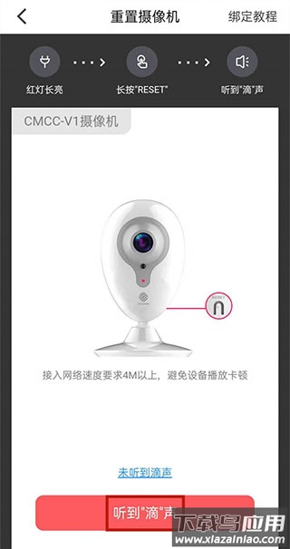 3、按照指引重置摄像头,注意听到提示音。