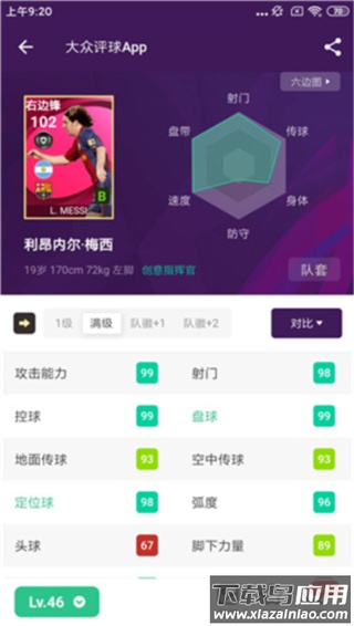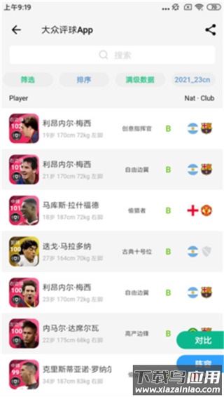 1、具备实况足球球员能力值对比功能,并提供球员收藏夹服务;