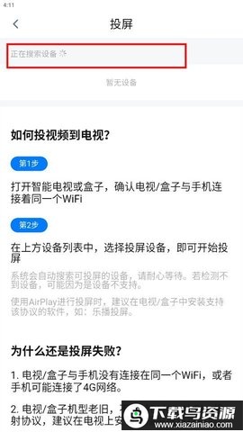 2、在上方的设备列表中,选择需要投屏的设备,即可开始投屏播放。