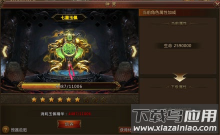 玉佩能大幅提升生命上限,使用玉佩碎片进行升级,材料主要来源于活跃度奖励与BOSS掉落。