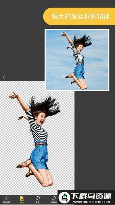 用户只需简单勾勒需要提取的物体轮廓,即可快速获得抠图结果;软件同时提供丰富的贴纸与背景素材库,方便进行图像合成与替换。通过该工具可自由更换人物背景、调整头像画面,并支持滤镜添加、文字标注、手绘涂鸦、透明度调节以及图片变形等多种编辑功能。