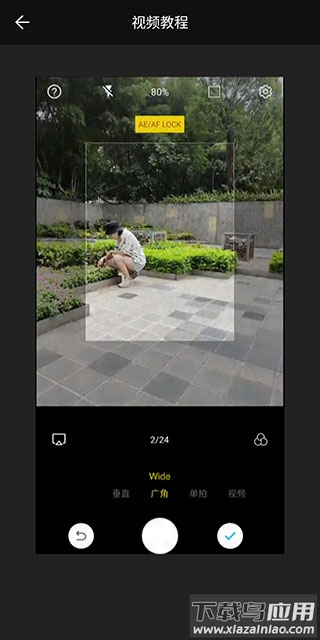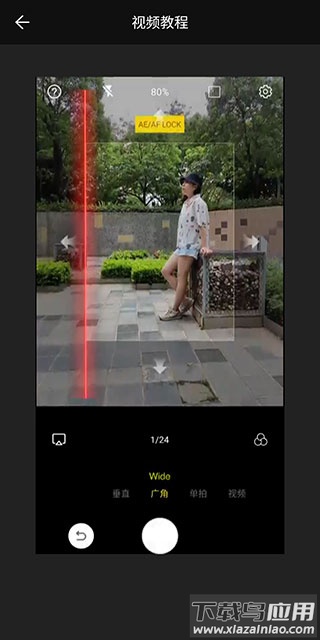 1. 在拍摄界面下方选择【广角】模式,并完成第一张照片的拍摄。