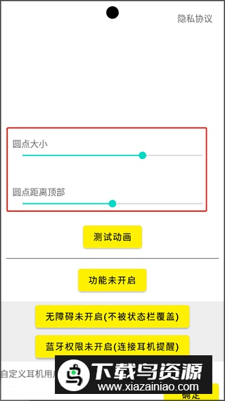4. 调整显示圆点的大小与顶部距离,点击测试动画预览效果。
