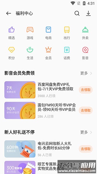 4、浏览并选择希望领取的福利项目;
