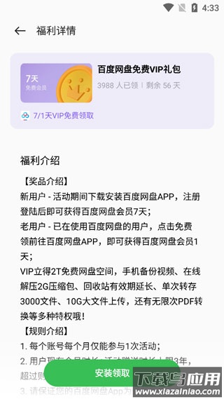 5、滑动至页面底部,点击“安装领取”按钮;
