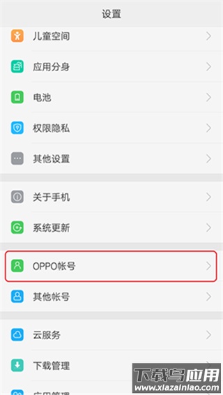 2、在设置界面内选择“OPPO帐号”选项;