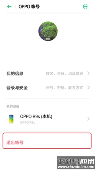 3、进入OPPO帐号页面后,点击“退出账号”按钮;