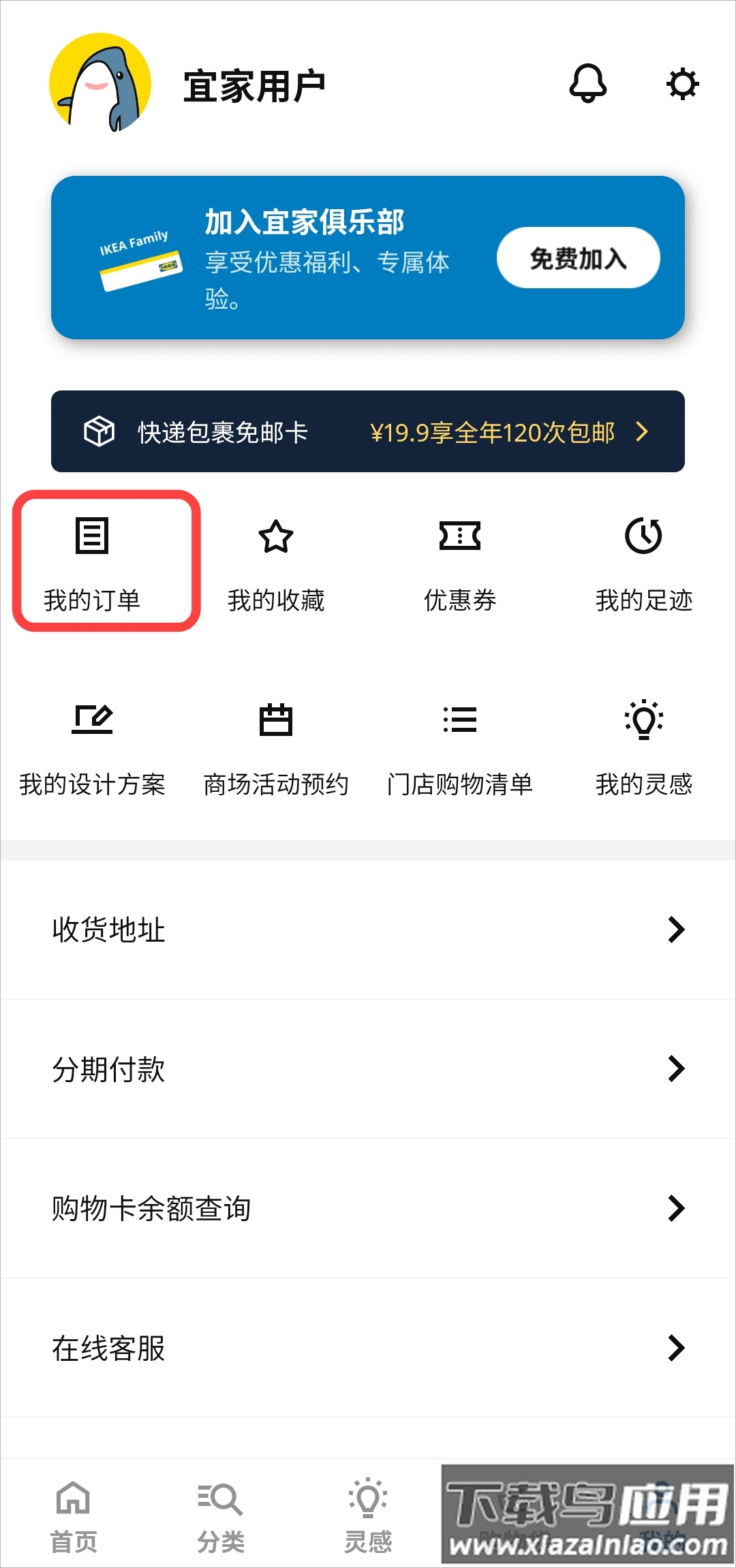 1、打开宜家家居网上商城官方应用,进入“我的订单”页面;
